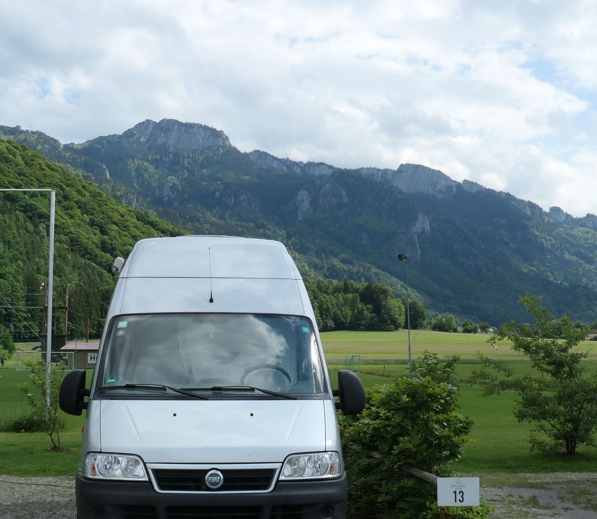 Ausgangspunkt ist der Camper-Stellplatz „Alpen-Camping Aschau“, den Hector schon länger im Visier hat. Vollautomatisiert, sehr hübsch und komfortabel, aber auch sehr teuer – das geht in Ordnung, solange hier alles so sauber und ordentlich ist, wie jetzt zu Saisonbeginn. Am besten finde ich, dass ich von hier aus zu Fuß nach Aschau downtown komme und den Einstieg in die geplante Wanderung gut erreichen kann.
