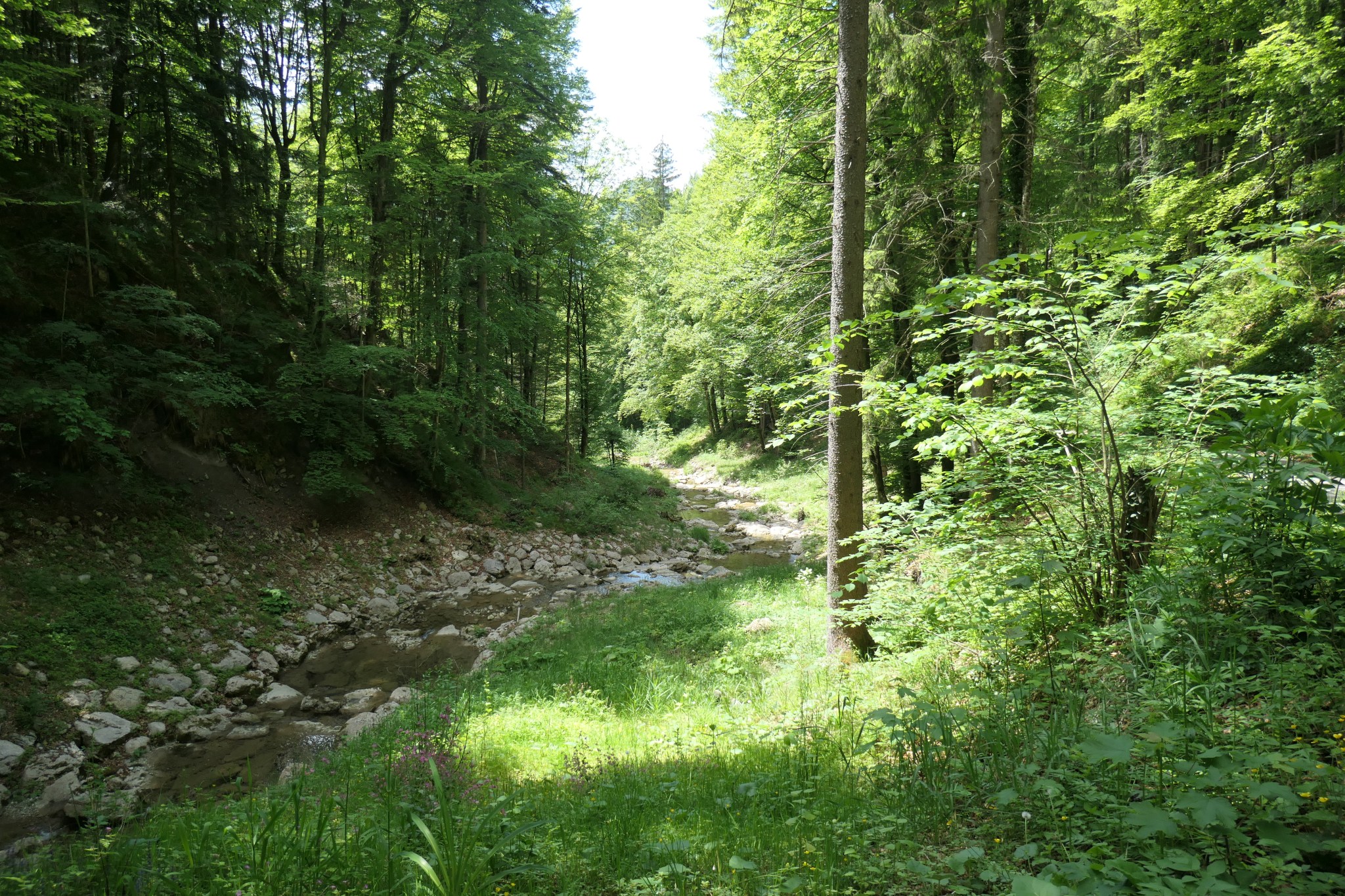 Passing by a vivid creek, I try to get a good routine with this mountain app. Finally, I switch Komoot to spoken indications for each turn, as I rather look around me in beautiful nature than following my phone all along.