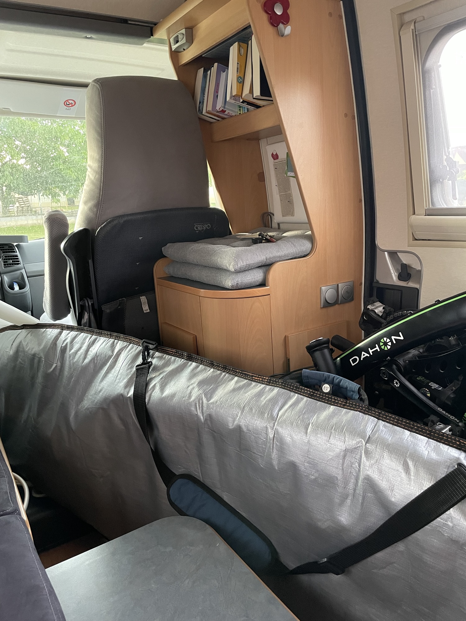 Mein Plan ist, am nächsten Morgen die berühmten Gärten von Manoir d‘Erignac zu besichtigen und dann bis zur Westküste durchzufahren. Allerdings sind feste Pläne nur halb so gut wie Spontaneität: Aus der willkommenen Abkühlung eines Gewitters wurde eine Regenfront. Gut, dass ich Fahrrad und Surfboard im Flur geparkt habe (und nicht draußen), so muss ich nur das Rad zurück ins Bad räumen und wir sind abfahrbereit! Kommen wir halt früher am Meer an, freu ich mich 😎