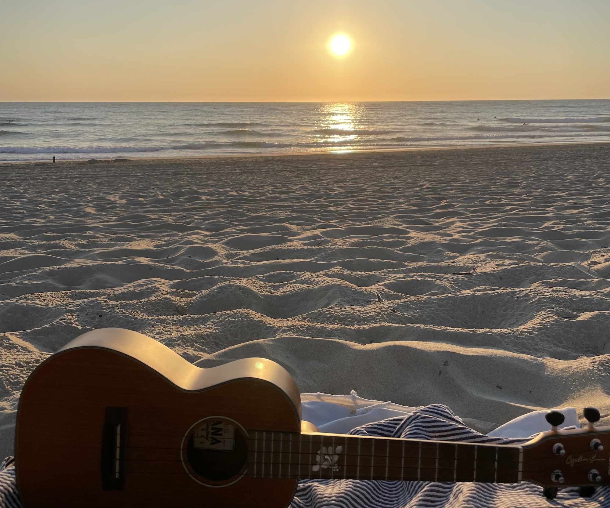The beach attracts me day and night: sunset is ukulele time. Singing along with the breakers is so very beach-life, it even motivates me to some upside-down-postures.