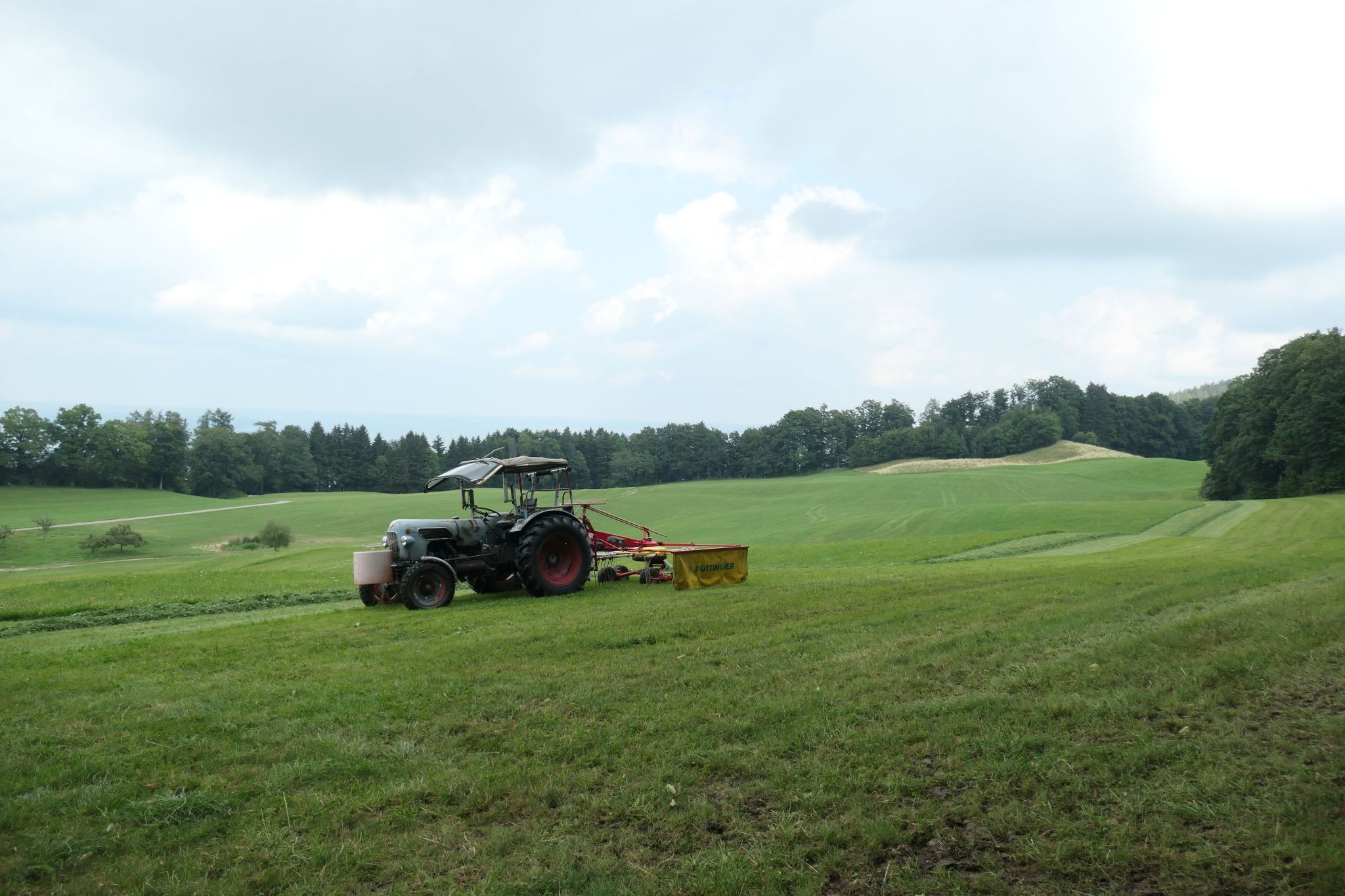 Consequently, I follow the way towards Hintergschwendt, impressed by the antique tractor they use for hard work. I would love to get the picture straight, but avoid to do so for the collateral of tipping trees.