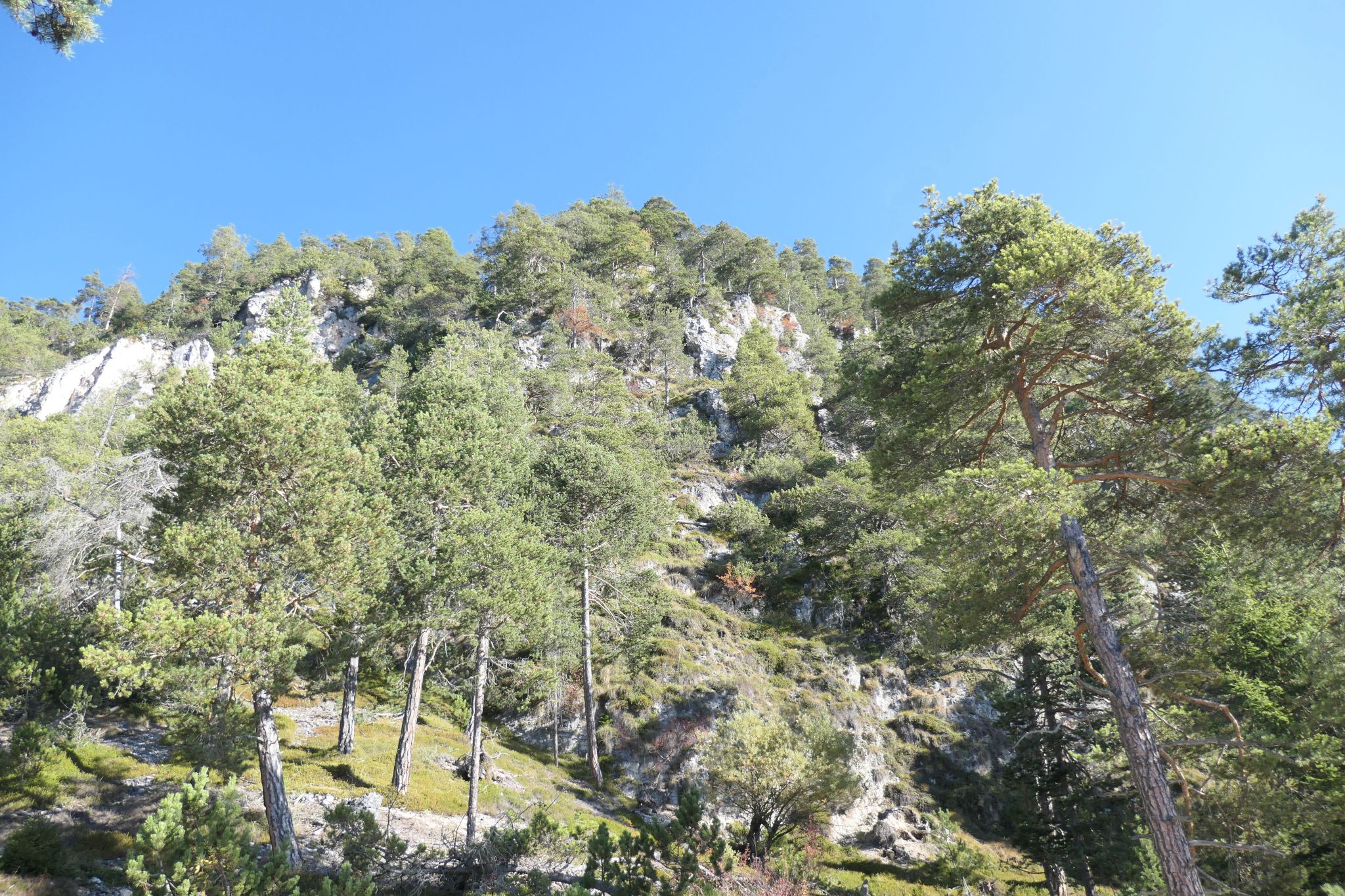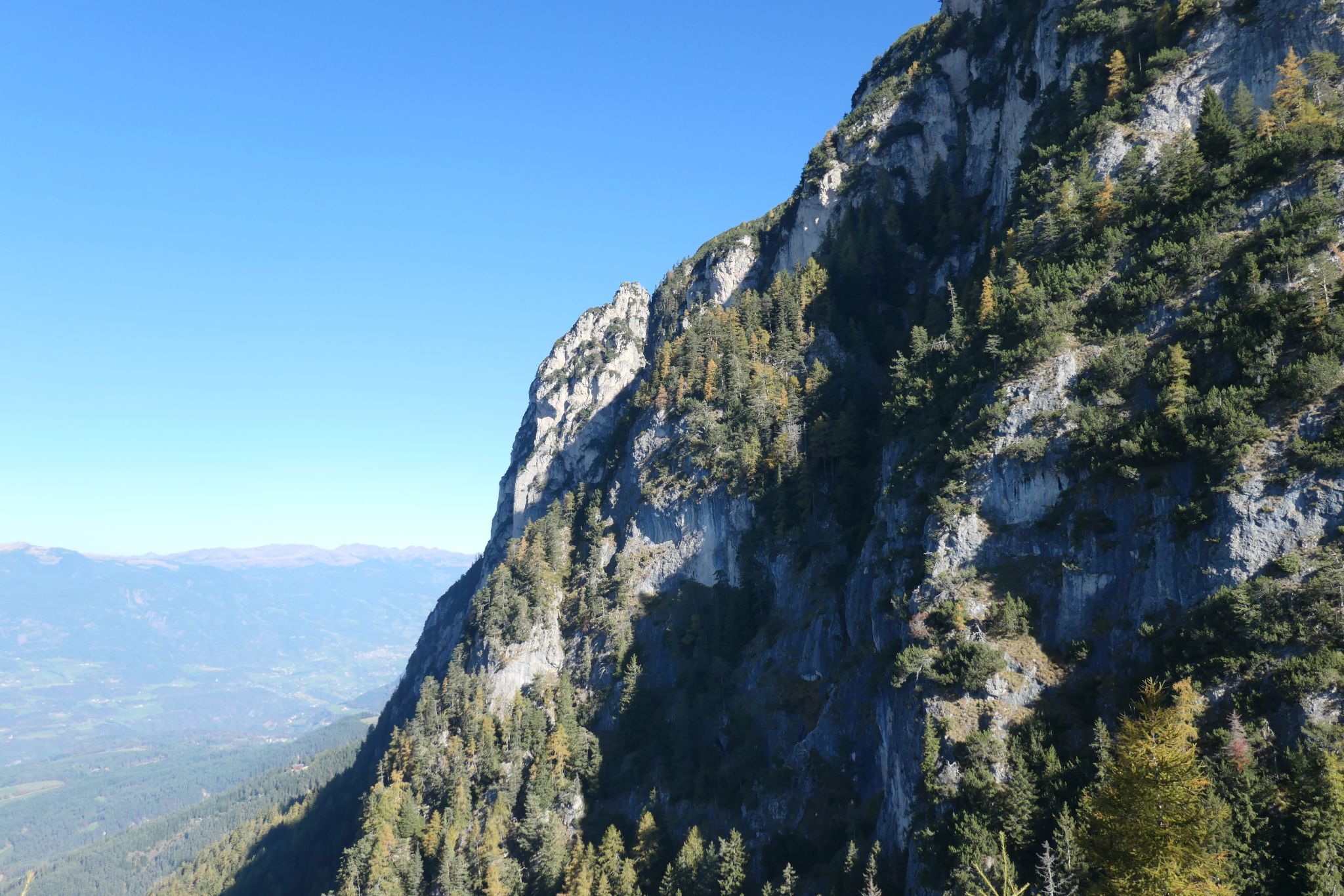 Weiter oben verlasse ich die Forststraße und biege auf einen schmaleren Steig ab. Mit jedem Schritt genieße ich die spätsommerliche Sonne und finde es unfassbar, dass an den Nordalpen die Saison schon vorbei ist. Zumindest hat dort Ende Oktober kaum noch eine Hütte auf, und überhaupt ist es meist kälter und nasser… Wie gut, dass ich hier bin!