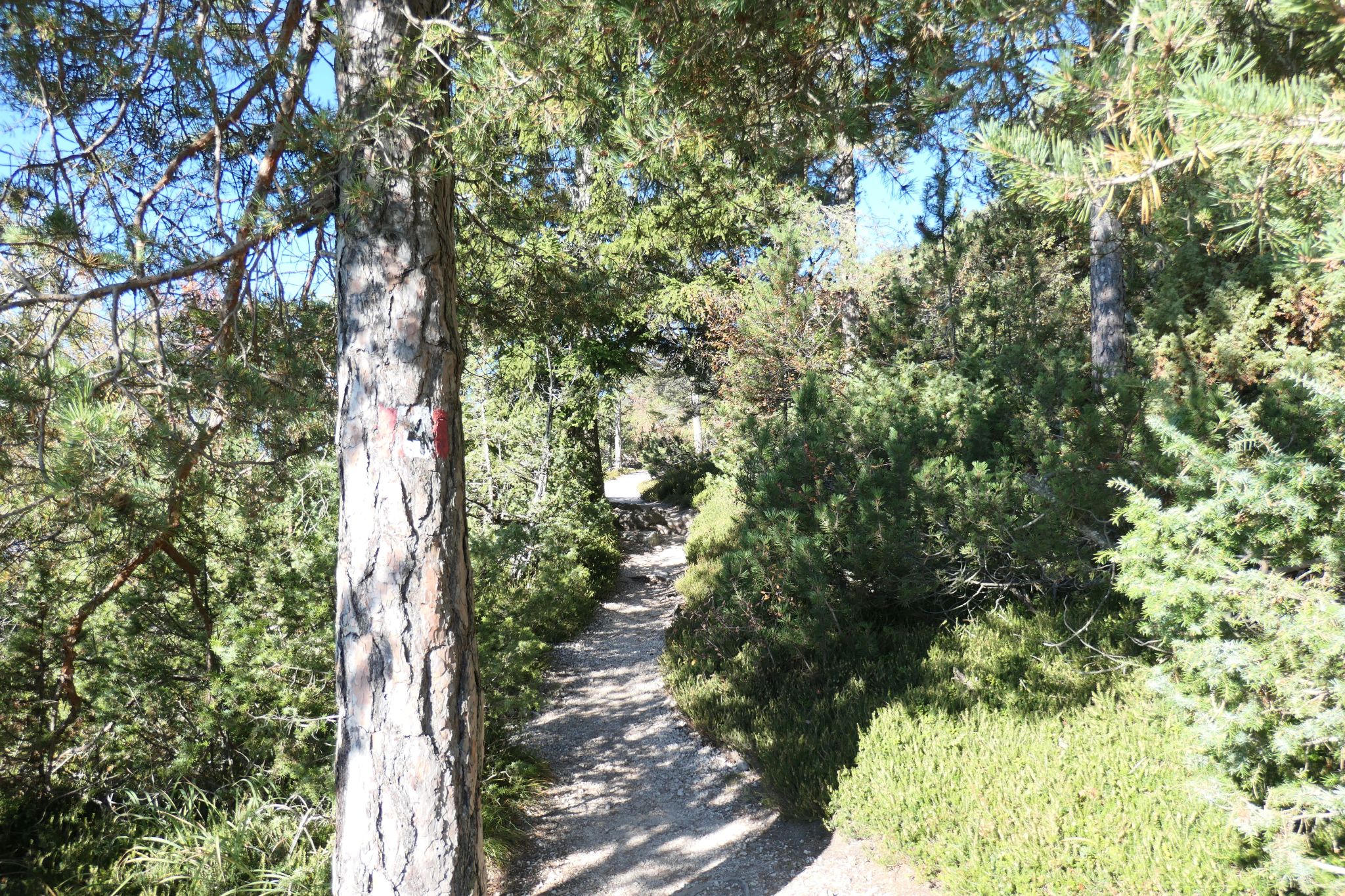 It does not take long until I change direction again, not the vertical one: a clear, yet somewhat rough path wiggles through the trees. It is steeper than the first half of the route. No wonder that few hikers enter this section at all. The more I think about it, the better I like the idea of being among the tough ones, those full of strength, with young blood and solid knees. At least, I manage the tour without supporting bandage – yay to re-installed fitness!