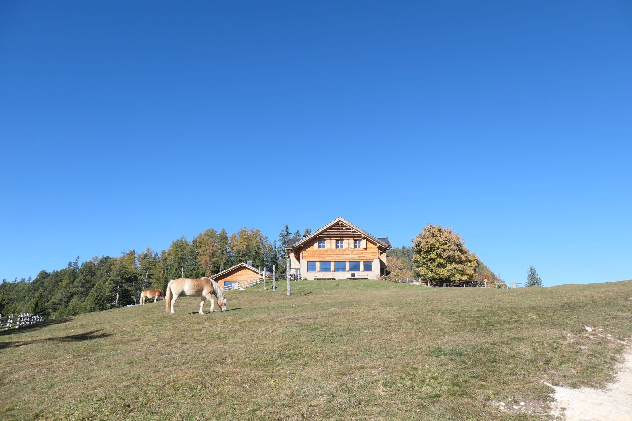 Bald erreiche ich die Tschafonhütte, die mitten am Vormittag noch recht einsam ist. Egal, wie verlockend sie erscheint, es ist noch zu früh für einen Einkehrschwung.