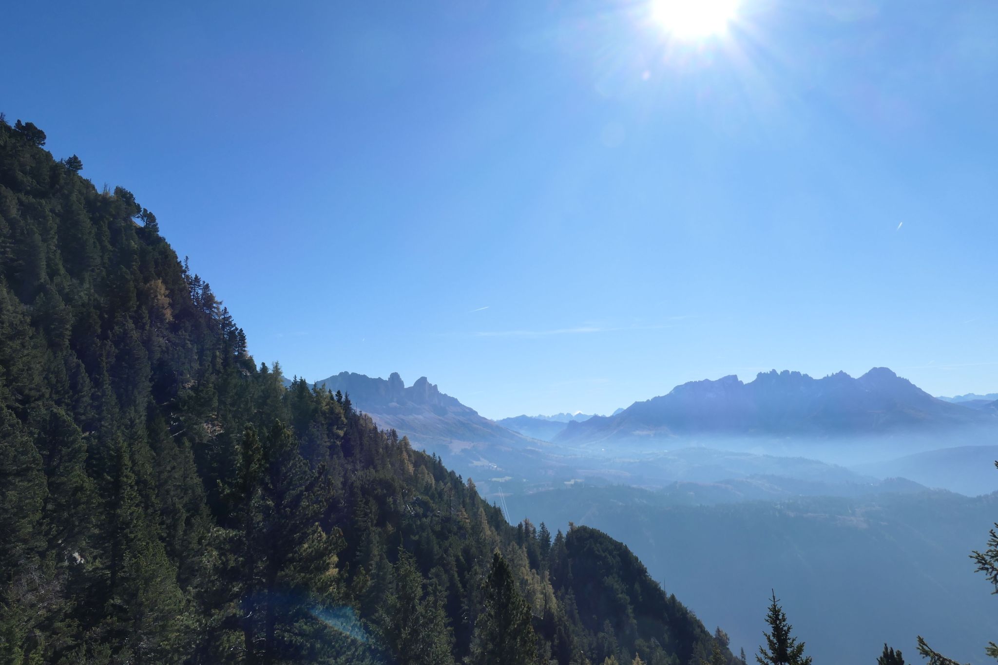 Ich genieße noch ein wenig das Panorama, dann trete ich den Rückweg an. Irgendwie habe ich das Gefühl, dass der bei dieser Tour etwas zäh werden könnte, schließlich gibt es zwei kleine Gegen-Anstiege und steile Bergpfade, die auch bergab ordentlich in die Beine gehen. Also gilt: Nach dem Gipfelkreuz ist vor der Hütte! Somit ist die Tschafon ab jetzt das neue Sehnsuchts-Ziel. Und sehnsüchtig werde ich bis zur Ankunft noch…