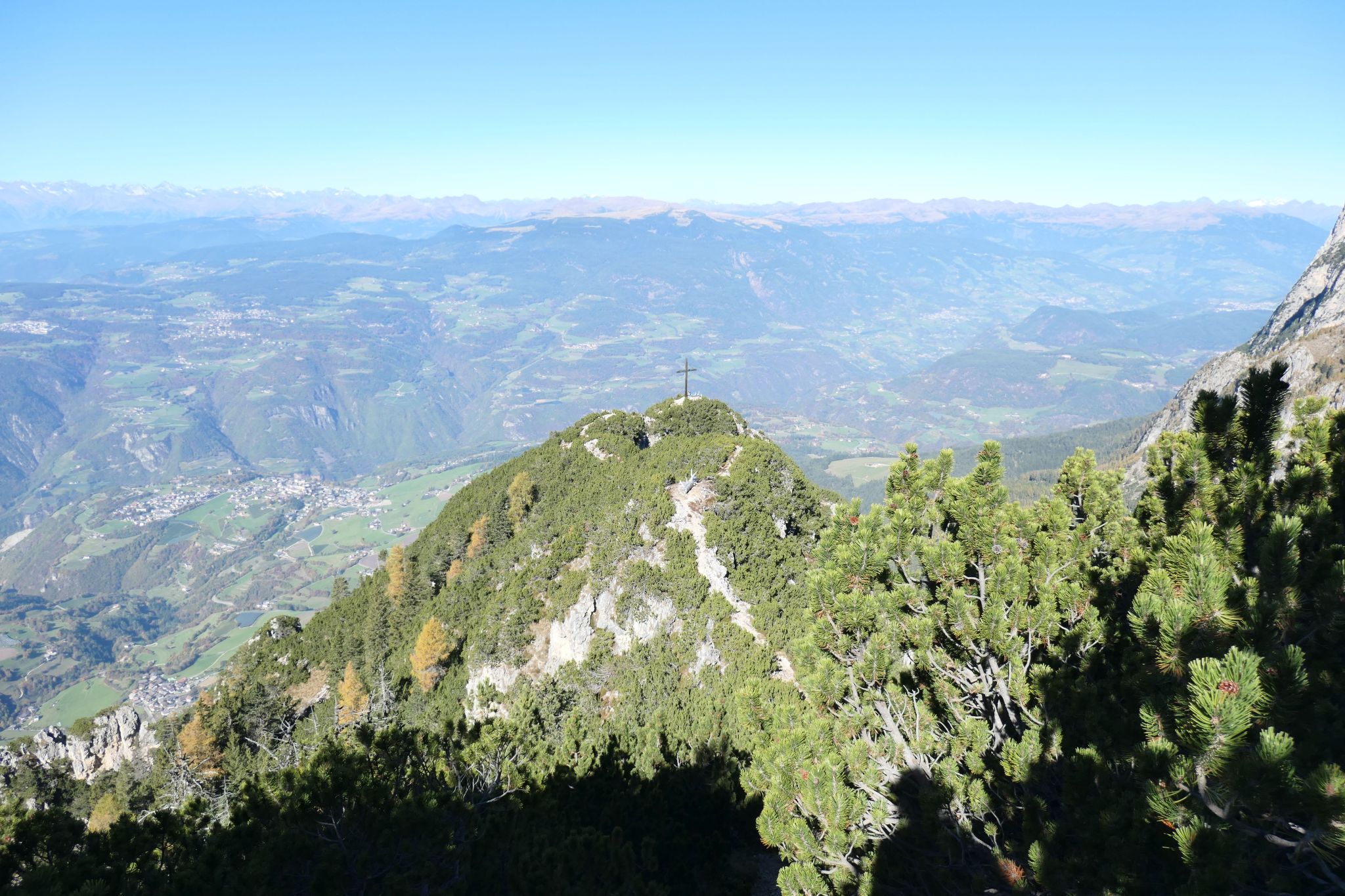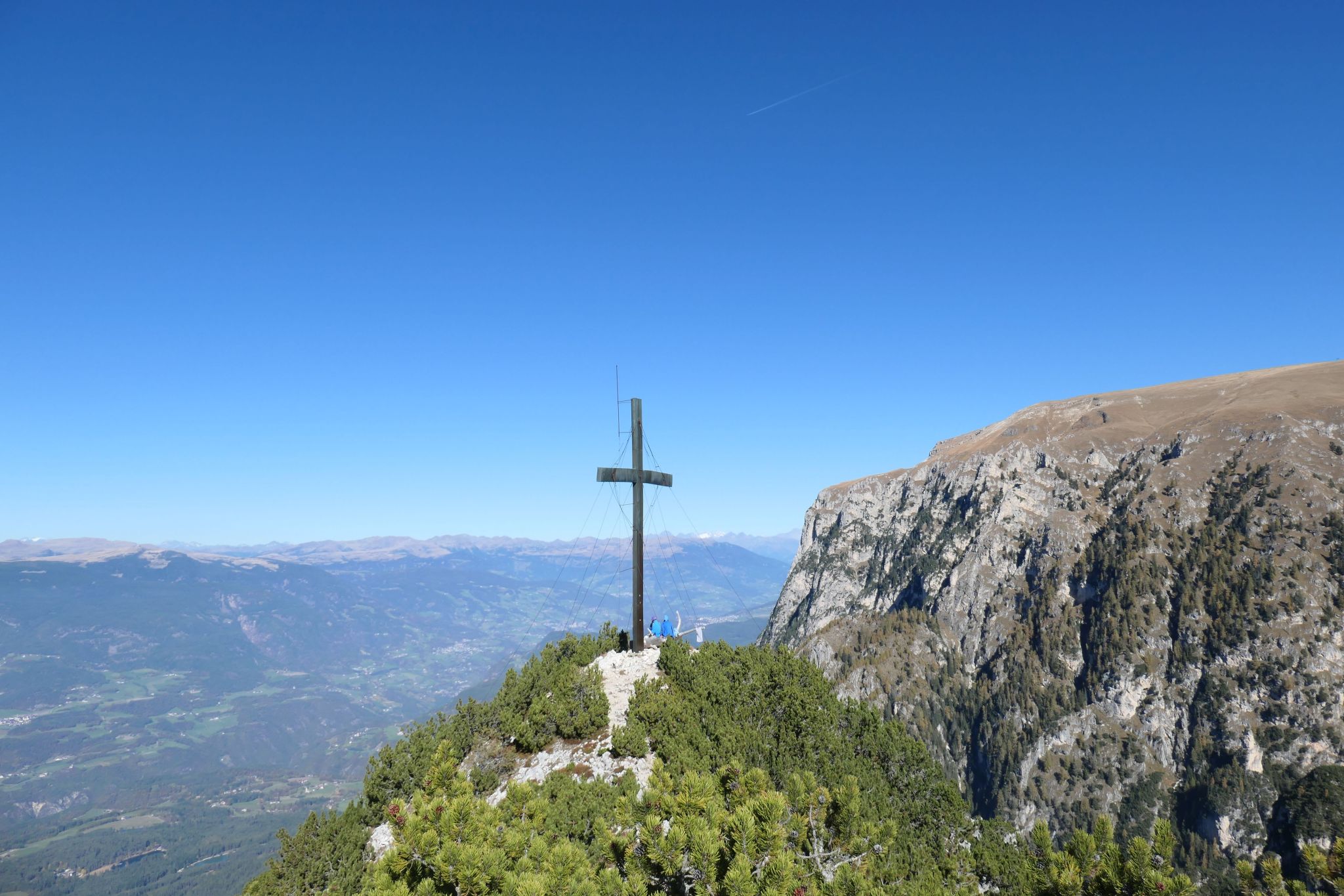 People who dislike vertigo might be happier with the higher (yet: almost invisible) summit. Along the way to the cross, the mountain’s flanks lead down a few hundred meters – great perspectives, I dare say.