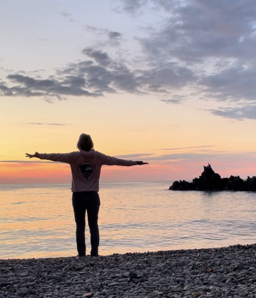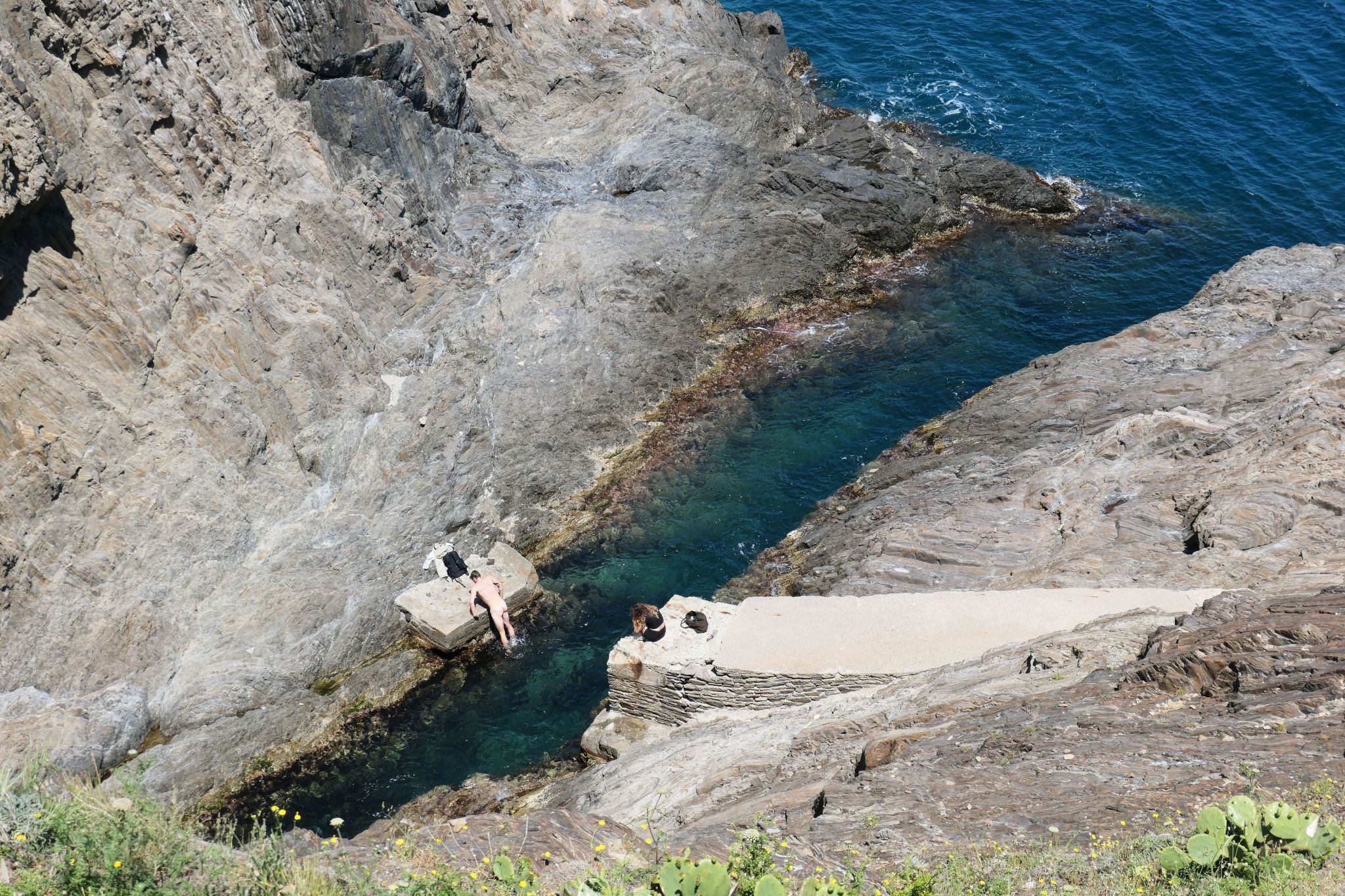 Soon enough, the sun invites us to the beach, into the blue water. Having started with 13 °C water temperature, I appreciate the mild 18-20° of the mediterranean sea. Linda gets into steady training routine, following the fishes for kilometres, while I prefer coffee and yoga to start my day.