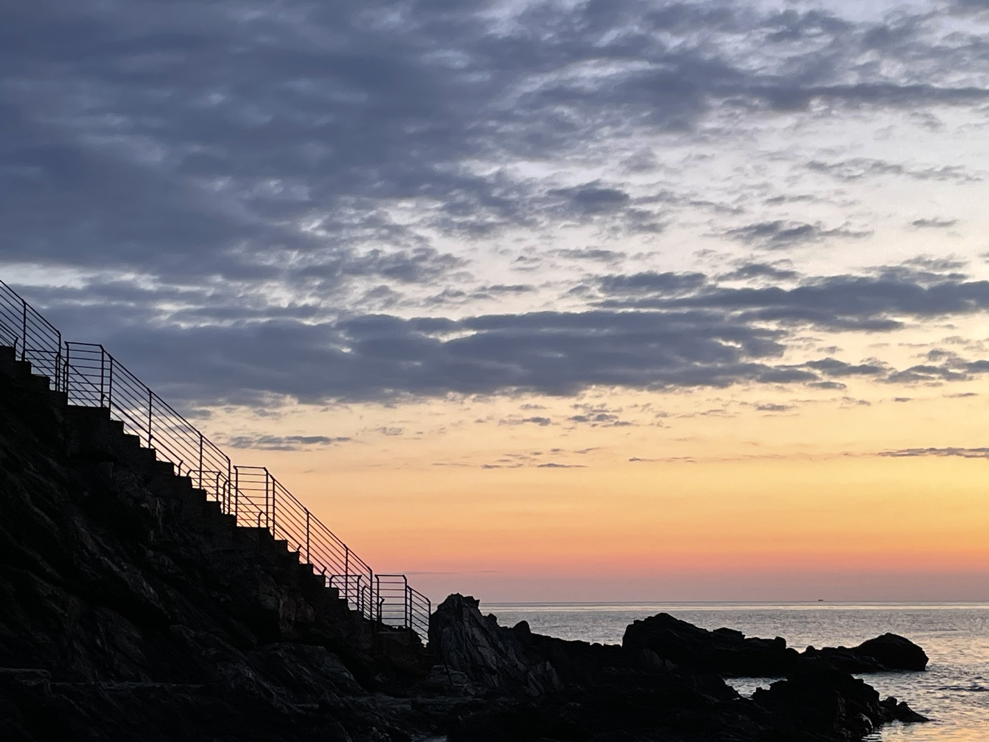 After a splendid dinner at “Lou Portaou”, we use gravity for our way back to the campsite. We love to end the day at the beach, some with a ukulele, some with a cup of tea – both with colourful sunsets.